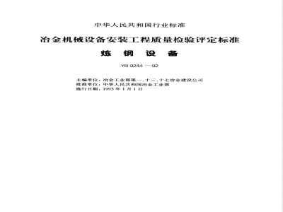 YB 9244-1992 冶金机械设备安装工程质量检验评定标准(炼钢设备) YB9244-1992 标准下载解压密码:www.bzxz.net