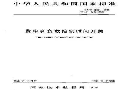 本标准规定了最新制造的室内使用的并具有工作储备的时间开关型式试验要求其时间开关用于对全年中指定日期和时间内的电负载费率计度器和最大需量指示器的控制这些时间开关可以以包括电子线路的各种形式工作。本标准不适于远控或与无线电频率同步工作的时间开关。本标准包括具有模拟标度盘或数字显示的时间开关。同步的;晶控的。本标准不包括接收试验和一致性试验但接收试验作为例子在附录中给出。本标准没包括可靠性方面的要求因为还没有可纳入型式试验文件的短期试验方法来检验本项要求。 GB/T 9092-1998 费率和负载控制时间开关 GB/T9092-1998 标准下载解压密码:www.bzxz.net