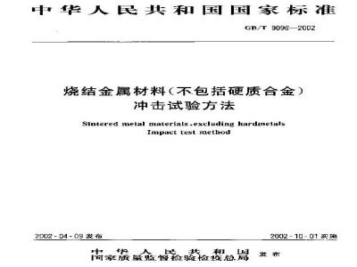 木标准是对G/T9396—1988烧结金属材料(不包括硬质合金)击试验方法>的修订修订时,对标准微工少划修改: