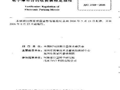 本规程适用于以IC卡或磁卡为储币载体的电子停车收费表的首次检定、后续检定和使用中的检验。 JJG 1010-2006 电子停车计时收费表检定规程 JJG1010-2006 标准下载解压密码:www.bzxz.net