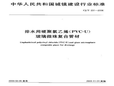 Unplasticizcd polyvinyl chluride(PvC-U)and glass micrusphereconpnsite pipes for drainage2006-06-26发布