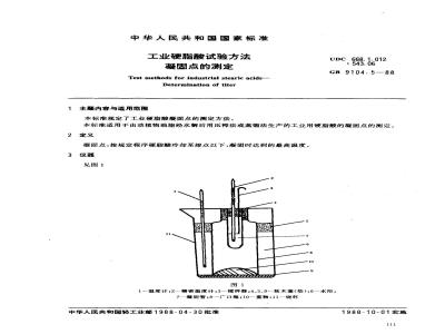 本标准适用于由动植物油脂经水解后用压法或蒸馏法生产的工业用硬脂酸的凝固点的测定。2定义