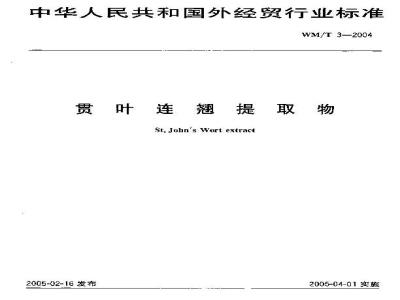 本标准规定了贯叶连翘提取物的技术要求、检验方法、检验规则和标签、包装、运输、贮存要求。 WM/T 3-2004 贯叶连翘提取物 WM/T3-2004 标准下载解压密码:www.bzxz.net