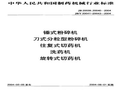 中华人民共和国制药机械行业标准JB20039、20040—2004