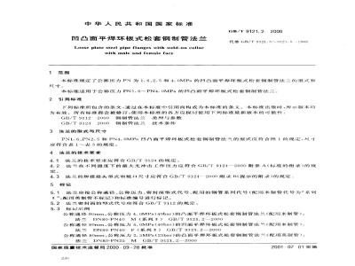 本标准规定了公称压力PN为1.6、2.5和4.0MPa的凹凸面平焊环板式松套钢制管法兰的型式和尺寸。本标准适用于公称压力为PN1.6~PN4.0MPa的凹凸面平焊环板式松套钢制管法兰。 GB/T 9121.2-2000 凹凸面平焊环板式松套钢制管法兰 GB/T9121.2-2000 标准下载解压密码:www.bzxz.net