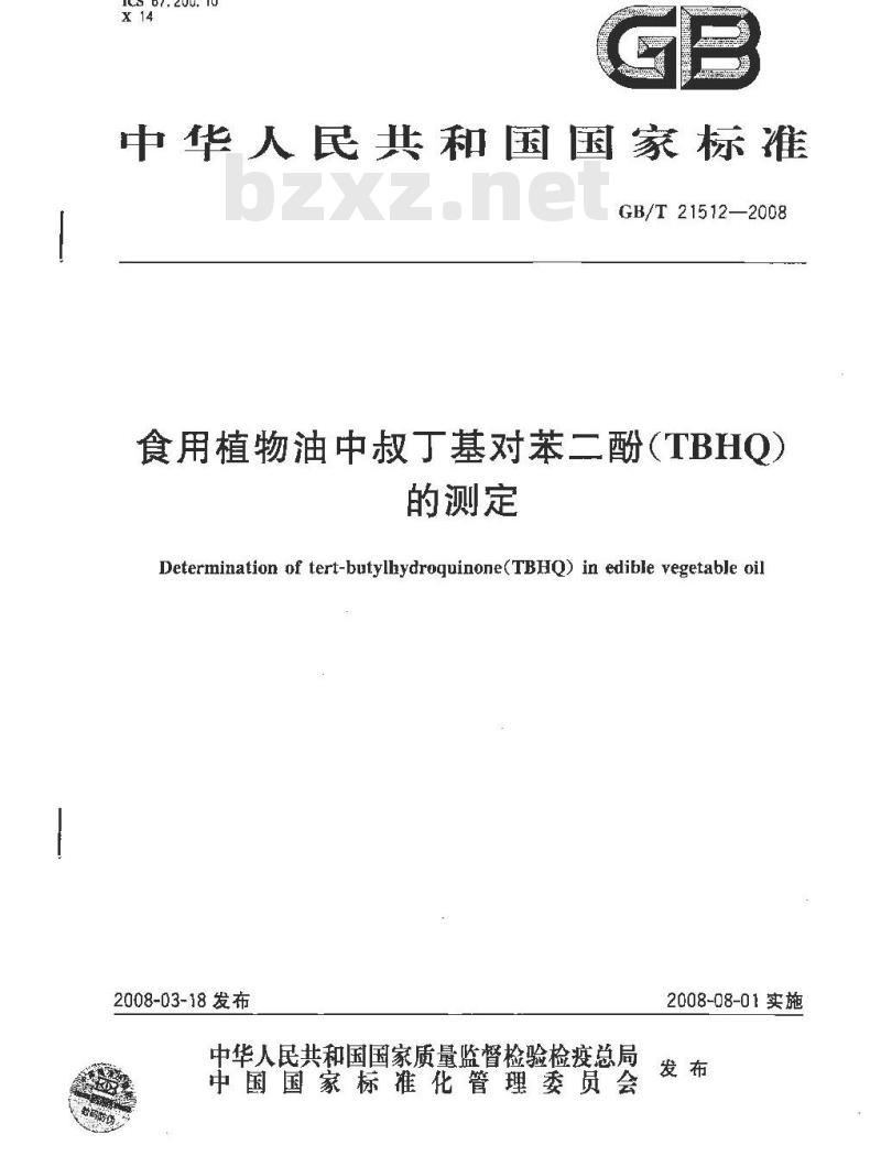 Determination of tert-butylhydroguinone(TBHQ) in edible vegetable oil2008-03-18发布