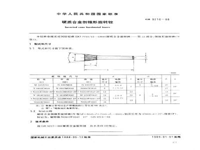 GB/T 9216-1988 硬质合金倒锥形旋转锉 GB/T9216-1988 标准下载解压密码:www.bzxz.net