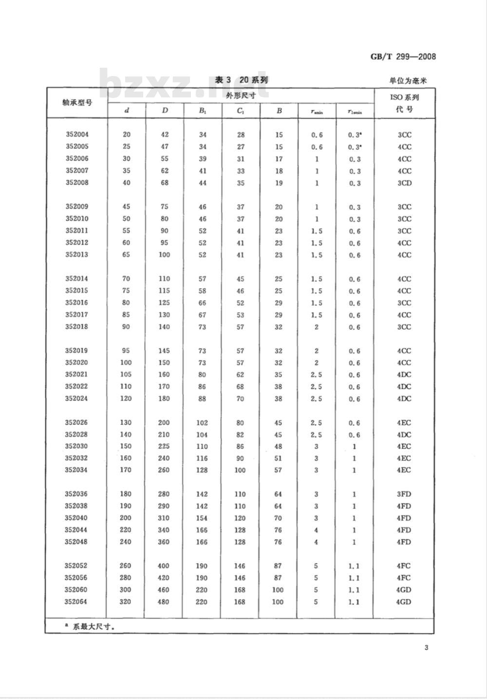 IS0355:2007中部分轴承的外形尺寸GB/T299—2008