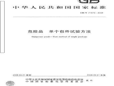 本标准为首次发布。本标准规定了危险品中爆炸性分类定级所需试验方法的设备和材料、试验步骤及试验报告。 本标准不适用于对下述货物危险性的试验:———军用爆炸品的危险性;———在生产过程中的爆炸品的危险性;———无包装的爆炸物质在运输中的危险性;———因受静电或电磁场的影响所造成的危险性;———因操作不当或违章操作所引起的危险性;———其他非正常运输条件下的特殊危险性。 本标准对应于联合国《关于危险货物运输的建议书 规章范本》和联合国《关于危险货物运输的建议书 试验和标准手册》,与其一致性程度为非等效。其有关技术内容与上述手册完全一致,在标准文本格式上按GB/T1.1—2000做了编辑性修改。 GB/T 21573-2008 危险品 单个包件试验方法 GB/T21573-2008 标准下载解压密码:www.bzxz.net