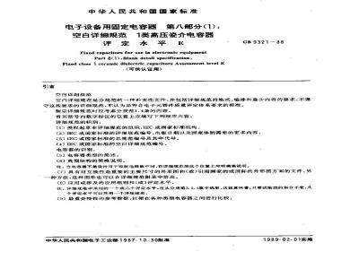 空白详细规范是分规范的一种补充性文件,并包括详细规范的格式 、编排和最少内容的要求。不遵守这些要求的详细规范,不认为是符合电子器件质量评定体系要求的标准。 GB/T 9321-1988 电子设备用固定电容器 第8部分(1): 空白详细规范 1类高压瓷介电容器评定水平E(可供认证用) GB/T9321-1988 标准下载解压密码:www.bzxz.net