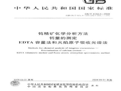 中文名称:钨精矿化学分析方法 钙量的测定 EDTA容量法和火焰原子吸收光谱法