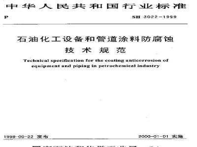 本规范适用于石油化工钢制设备、管道及其附属钢结构的外表面涂料防腐蚀工程。本规范不适用于表面温度超过500℃的设备和管道的外表面涂料防腐蚀。本规范不包括设备和管道的表面色和长输管道的涂料防腐蚀。执行本规范时,尚应符合现行有关强制性标准规范的规定。 SH 3022-1999 工业设备和管道涂料防腐蚀技术规范 SH3022-1999 标准下载解压密码:www.bzxz.net