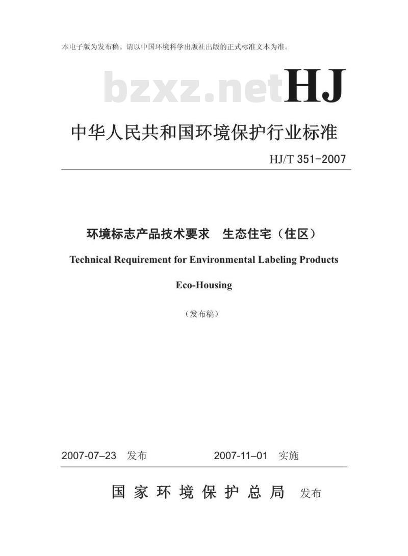 中文名称:环境标志产品技术要求 生态住宅(住区)