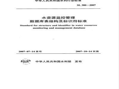 SL 380-2007 水资源监控管理数据库表结构及标识符标准 SL380-2007 标准下载解压密码:www.bzxz.net