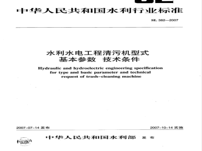Hydraulic and hydroelectric engineering specificationfor type and basic parameter and technicalrequest of trash-cleaning machine2007-07-14发布