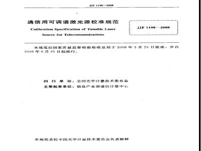 JJF 1198-2008 通信用可调谐激光源校准规范 JJF1198-2008 标准下载解压密码:www.bzxz.net