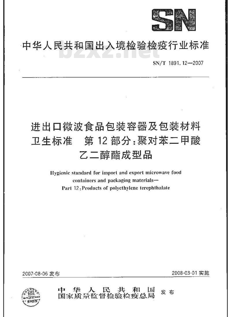 中华人民共和国出入境检验检疫行业标准SN/T 1891.12--2007