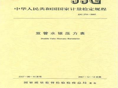 本规程适用于双管水银压力表的首次检定、后续检定和使用中检验。 JJG 274-2007 双管水银压力表检定规程 JJG274-2007 标准下载解压密码:www.bzxz.net