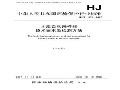 Thetechnical reguirement andtest proceduresforWaterQualityAutomaticSampler(发布稿)