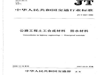 本标准规定了防水材料的术语和定义、分类、规格系列与尺寸允差、技术要求、试验方法、检验规则、以及标志、包装、运输和贮存的要求。本标准适用于公路工程用防水材料。水运、铁路、水利、建筑、机尝海洋、环保和农业等领域工程用防水材料可参照执行。 JT/T 664-2006 公路工程土工合成材料 防水材料 JT/T664-2006 标准下载解压密码:www.bzxz.net
