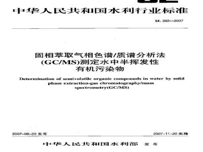 SL 392-2007 固相萃取气相色谱/质谱分析法(GC/MS)测定水中半挥发性有机污染物 SL392-2007 标准下载解压密码:www.bzxz.net