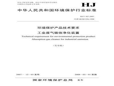 Technical requirement for environmental protection productAbsorptiongascleanerforindustrial emission(发布稿)