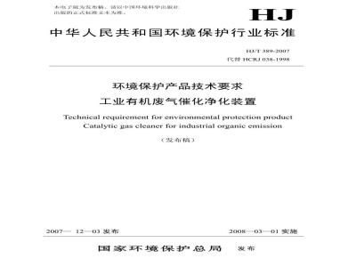 Technical requirement for environmental protection productCatalytic gas cleaner for industrial organic emission(发布稿)
