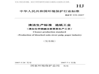 为贯彻实施《中华人民共和国环境保护法》和《中华人民共和国清洁生产促进法》,保护环境,为造纸工业(漂白化学烧碱法麦草浆生产工艺)企业开展清洁生产提供技术支持和导向,制定本标准。