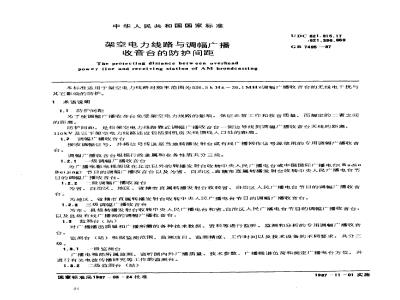 本标准适用于架空电力线路对频率范围为526.5kHz~26.1MHz调幅广播收音台的无线电干扰与其它影响的防护。