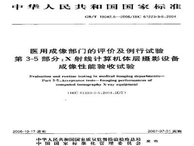 中文名称:医用成像部门的评价及例行试验 第3-5部分:X射线计算机体层摄影设备成像性能验收试验