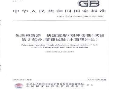 GB/T20624.2—2006/ISO6272-2:2002快速变形(耐冲击性)试验》分为二个部分:GB/T20624%色漆和清漆