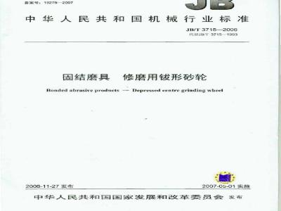 本标准由中国机械工业联合会提出本标准由全国磨料磨具标准化技术委员会(SAC/TC139)归口。本标准由郑州磨料磨具磨削研究所,深圳市二砂深联有限公司负责起草。本标准主要起草人:钟彦征、包华、王扎根、吕申峰、周运良、朱嘉本标准所代替标准的历次版本发布情况-JB37151986,JB/T3715—1993
