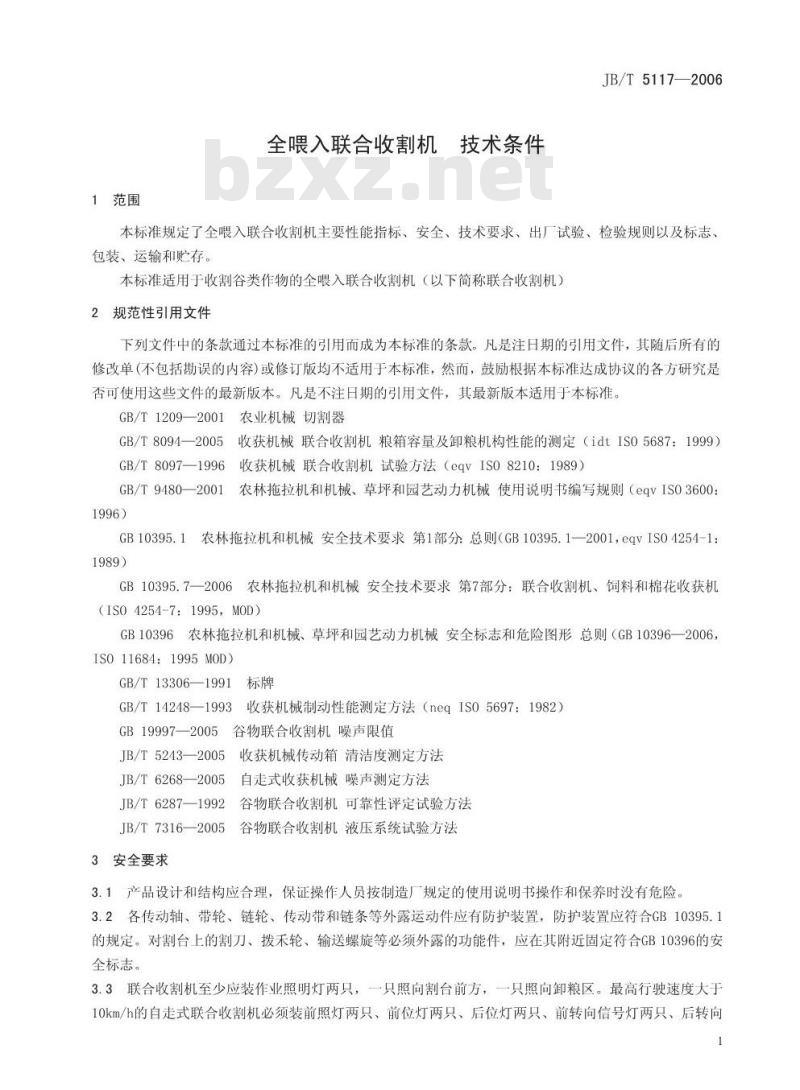 JB/T 5117-2006 全喂入联合收割机 技术条件 JB/T5117-2006 标准下载解压密码:www.bzxz.net
