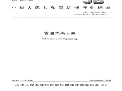 本标准代替JB/T6878.1—1993《管道式离心泵型式与基本参数》与JB/T6878.2—1993《管道式离心泵技术条件》。