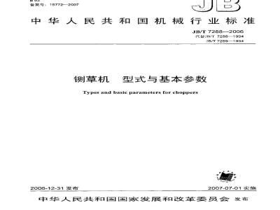 本标准与JB/T7288-1994和JB/T72891994相比,主要变化如下:规范性引用文件去掉了B/T9707.1《草机技术条件》,增加了JB/T8581《畜牧机械产品型号编制规则》。