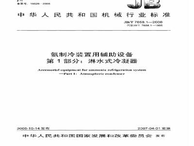 JB/T7658《氨制冷装置用辅助设备》分为18个部分:第1部分:淋水式冷凝器: