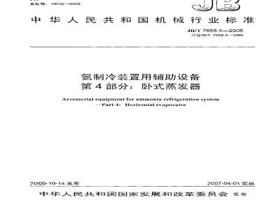 JB/T7658《氮谢冷装登用辅助设备》分为18个部分:第1部分:淋水式玲凝器;