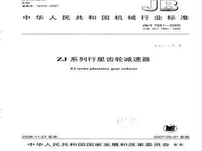 本标准主要用于建材行业磨机,也适用于冶金、能源及轻化设备中用减速器。 JB/T 7681-2006 ZJ系列行星齿轮减速器 JB/T7681-2006 标准下载解压密码:www.bzxz.net