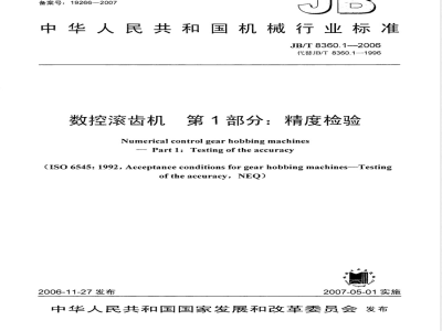JB/T8360《数控滚齿机》分为两个部分:-第1部分:精度检验;