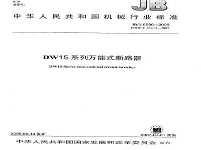 本标准代替JB/T8590.1--1997《DW15系列万能式断路器》。本标准与JB/T8590.1—1997相比,主要变化如下:JB/T8590-2006