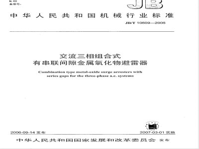 本标准规定了额定电压42kV及以下瓷外套和复合外套三相组合式有串联间隙金属氧化物避雷器的技术要求、试验方法、检验规则等内容。 JB/T 10609-2006 交流三相组合式有串联间隙金属氧化物避雷器 JB/T10609-2006 标准下载解压密码:www.bzxz.net
