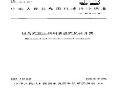组合式变压器用油浸式负荷开关JB/T10681—2006