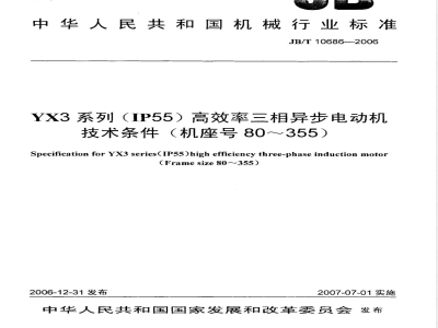 中文名称:YX3系列(IP55)高效率三相异步电动机 技术条件(机座号80~355)