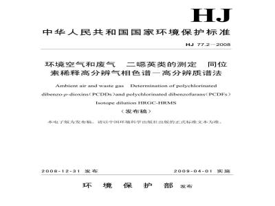 为贯彻《中华人民共和国环境保护法》和《中华人民共和国大气污染防治法》,保护环境,保障人体健康,规范环境空气和废气中二嗯英类的测定方法,制定本标准本标准规定了环境空气和废气中二嗯英类的同位素稀释高分辨气相色谱-高分辨质谱测定法。