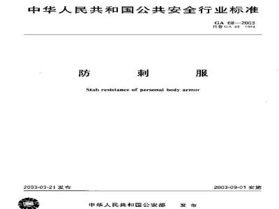 Stab resistance of personal body armor2003-03-21发布