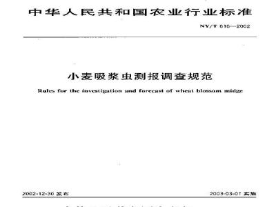 Rules fur the invesligalion Hnd forecas1 of wheat blossom midge2002-12-30发布
