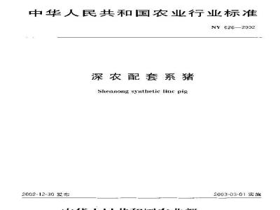 本标准规定了浓农配套系猪各专门化品及商品猪的外貌特征、繁殖性能、生长发育性能、胴体品质、种猪评定和种猪分级。本标准适用于浓农配套系猪种猪、商品猪的鉴定、选育、生产和出场对种猪的评定。 NY 626-2002 深农配套系猪 NY626-2002 标准下载解压密码:www.bzxz.net