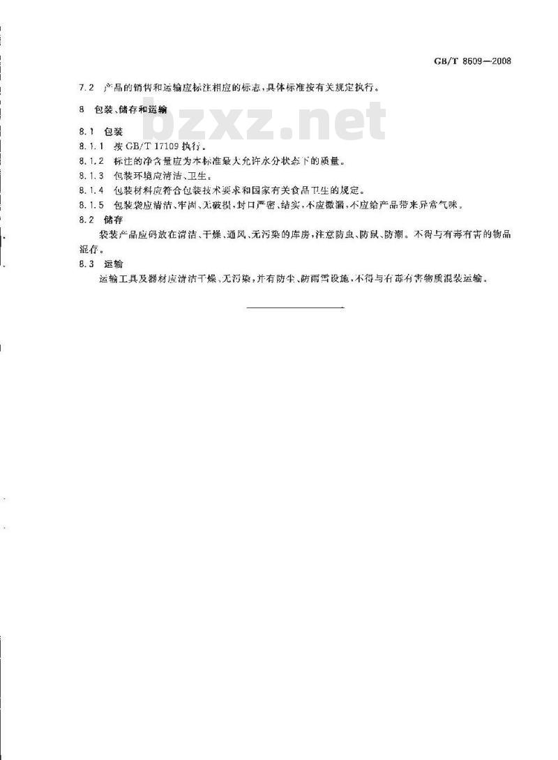 8.1.2标注的净含量应为本标准最大允许水分状态下的质量。8.1.3包装环境应清洁.卫生。