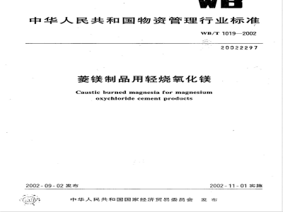 本标准规定了菱镁制品用轻烧氧化镁的分级、要求、试验方法、检验规则、包装、标志、运输与贮存。本标准适用于菱镁制品所用的由菱镁矿(MgCO3)经煅烧、磨粉而成的轻烧氧化镁。 WB/T 1019-2002 菱镁制品用轻烧氧化镁 WB/T1019-2002 标准下载解压密码:www.bzxz.net