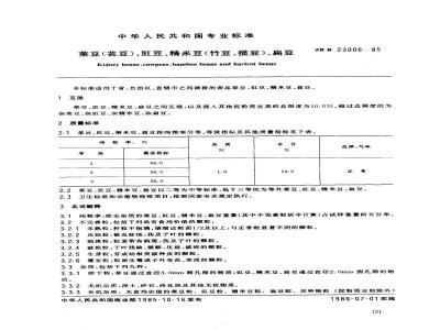 ZB B 23006-1985 菜豆(芸豆)、豇豆、精米豆(竹豆、榄豆)、扁豆 ZBB23006-1985 标准下载解压密码:www.bzxz.net